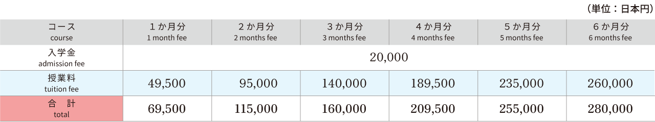 - 「在留資格認定証明書」交付時に、料金表の「入学前」欄の金額(1年分)をお支払いください。